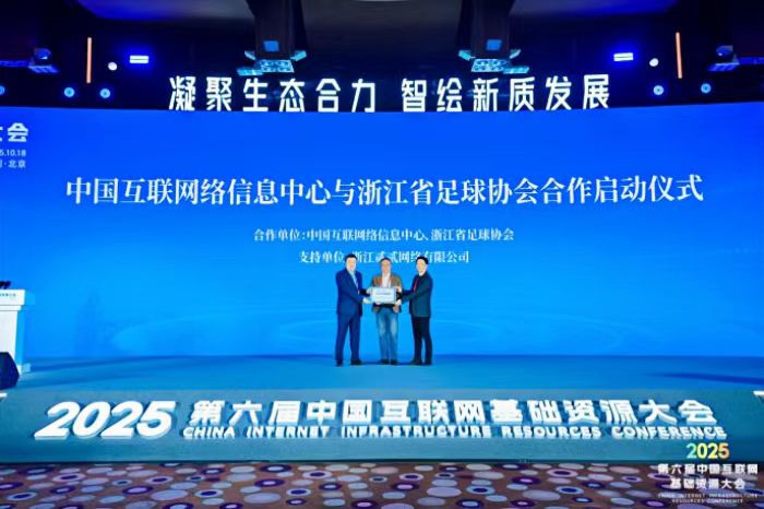 一是中国互联网络信息中心与浙江省足球协会共同为浙江足球超级联赛启动“浙超.中国”等国家顶级域名,成为国家顶级域名与体育赛事相融合创新实践的典范,国家顶级域名注册服务机构浙江贰贰网络有限公司将为合作提供技术支持。